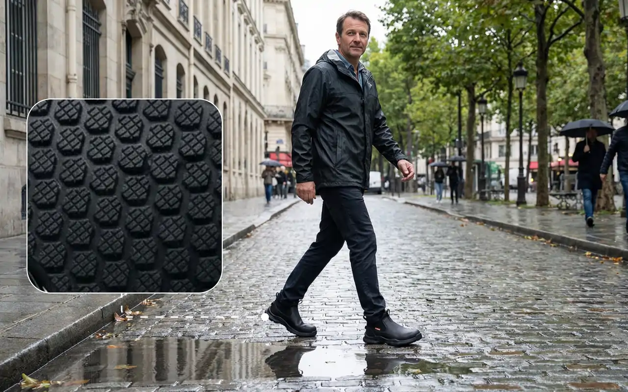 Pardoselile umede sau lichidele vărsate nu mai provoacă alunecări bruște în interior. Tălpile fiabile ajută la prevenirea accidentelor la serviciu sau acasă.