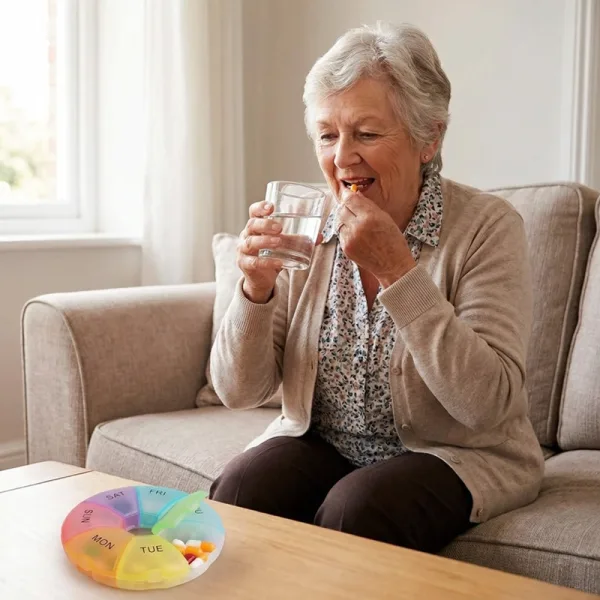 Bunica mea a găsit-o ușor de folosit. Etichetele pentru fiecare zi ajută mult și o ține chiar lângă pat. Nicio pastilă uitată.