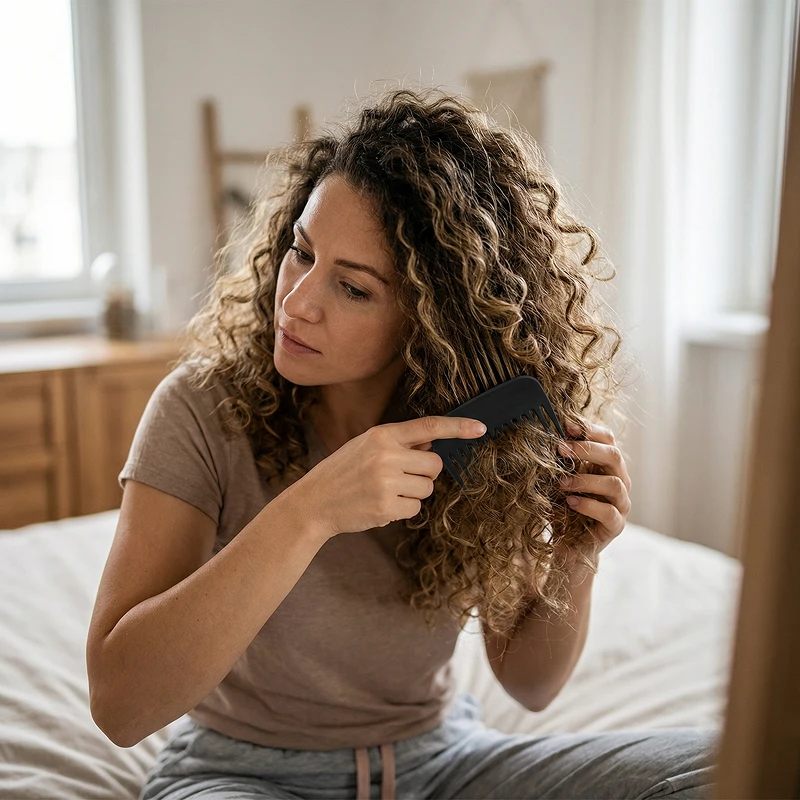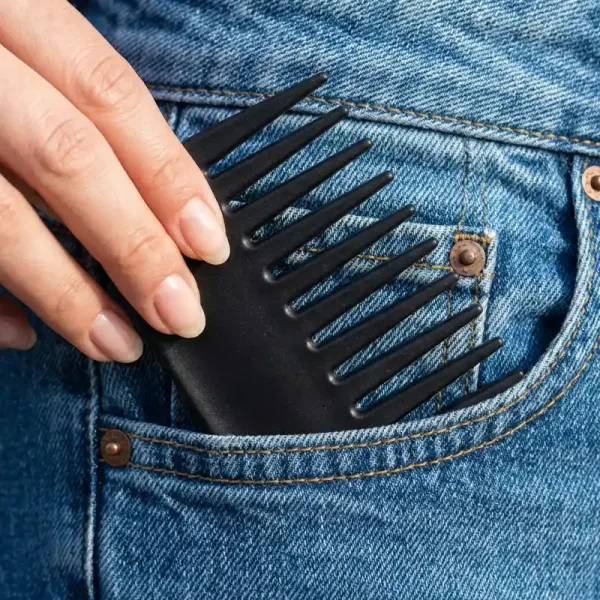 Port acest pieptene de buzunar peste tot acum. Încape direct în blugii mei și descurcă nodurile fără să tragă deloc. Super delicat și nu agață niciodată buclele mele!