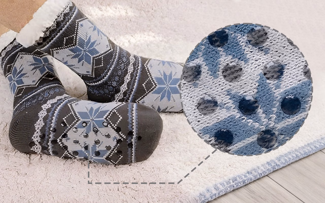 Bobițele din silicon previn alunecările pe orice suprafață netedă. Te poți mișca sigur pe parchet sau gresie acasă.