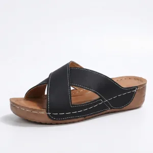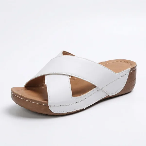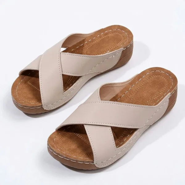 Sunt profesoară și stau toată ziua în picioare, iar aceste sandale cu pană au fost o binecuvântare. Bolta tălpilor mele este susținută și nu mă grăbesc să le dau jos după serviciu.
