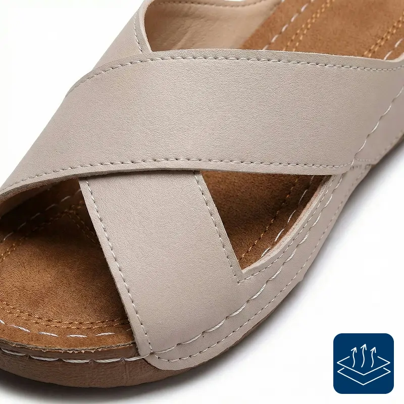 Le port în casă în loc de papuci și picioarele mele se simt susținute fără să-mi fie cald. Designul deschis lasă aerul să circule, iar talpa se simte fermă, dar totuși blândă.