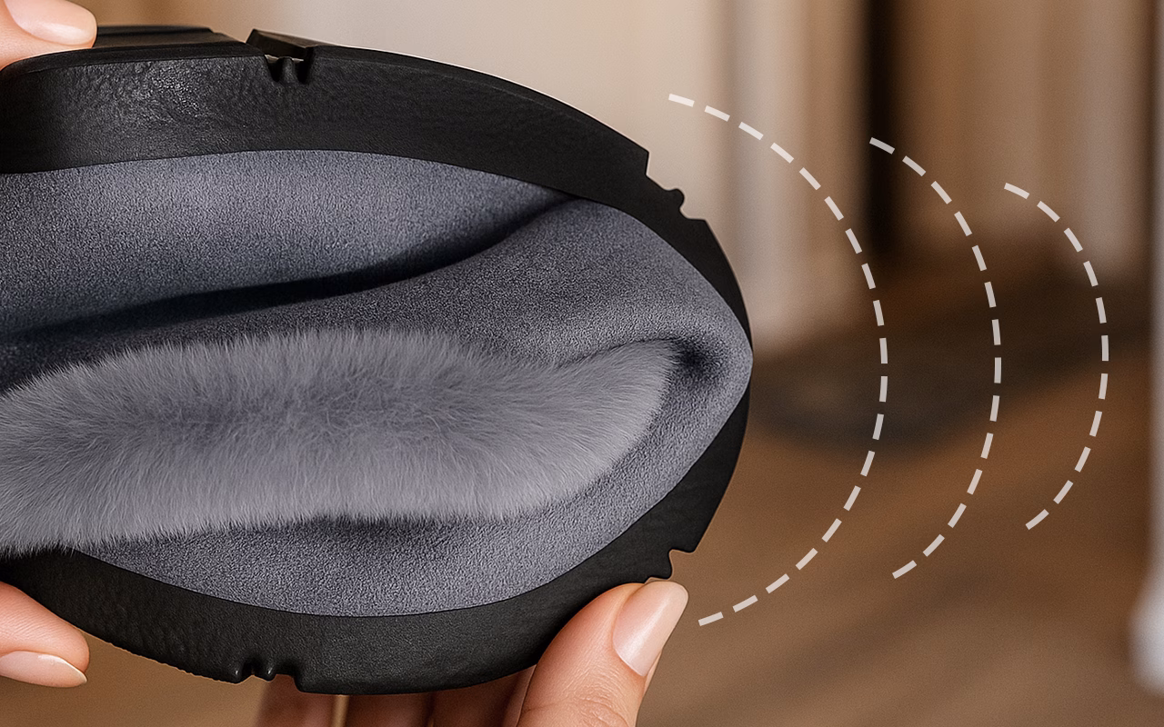 Picioarele rămân confortabile în aer liber, chiar și în serile geroase. Căptușeala moale din blană previne pătrunderea frigului în orice moment.