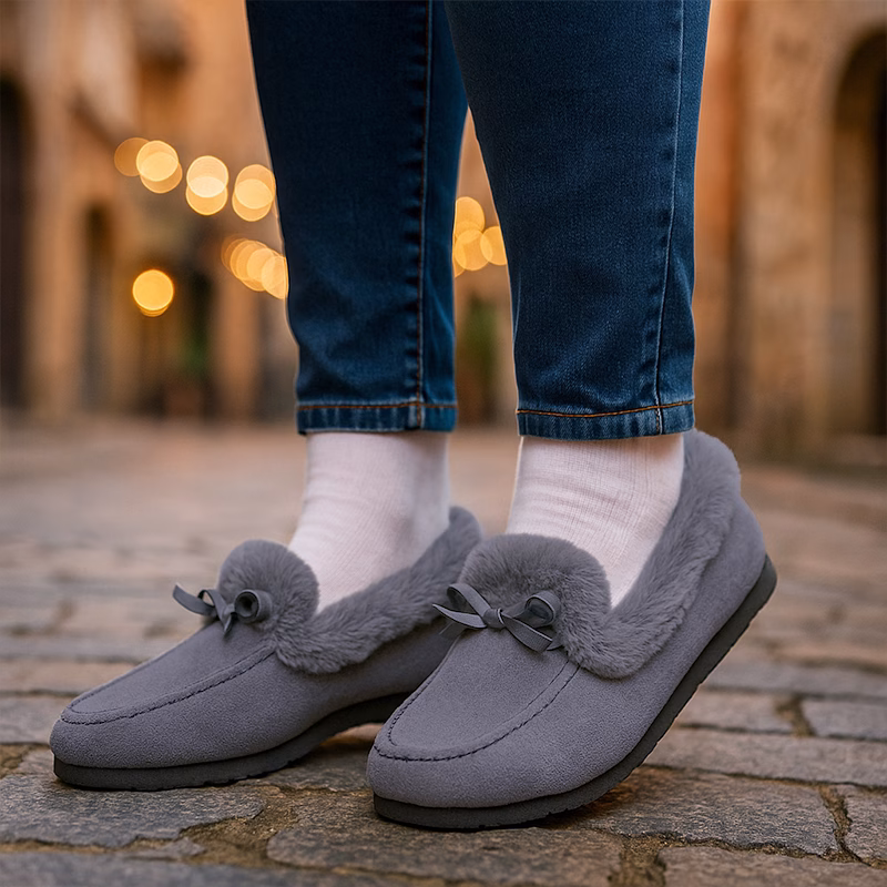 Iubesc absolut acești mocasini! Picioarele mele sunt calde și confortabile când îmi plimb câinele dimineața. Fundițele îi fac să arate foarte drăguț cu blugi.