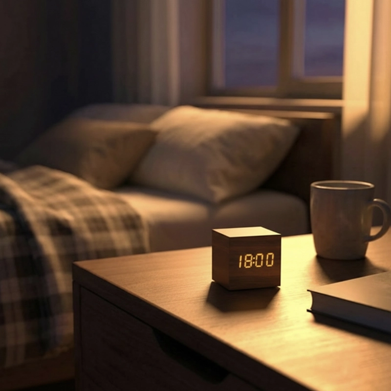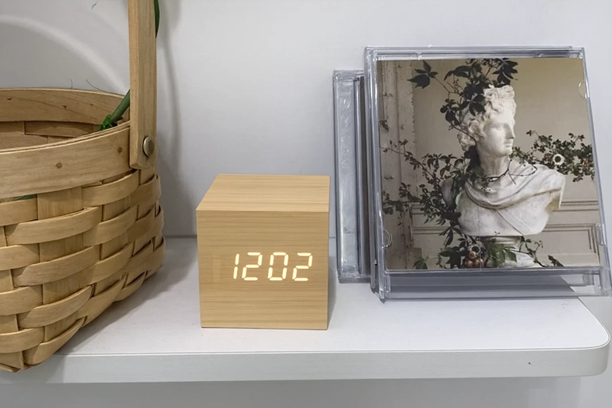 Nu mai am nevoie de telefon pentru alarme. Cubul de lemn este de încredere și îmi păstrează spațiul ordonat. Foarte ușor de configurat.