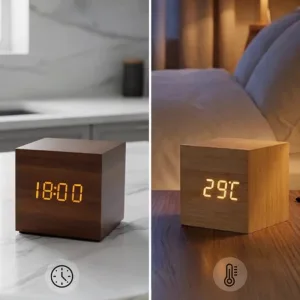 Să mă trezesc nu mai este atât de enervant de când folosesc acest ceas. Aspectul de lemn se potrivește cu orice, iar verificarea temperaturii mă ajută dimineața înainte de școală.