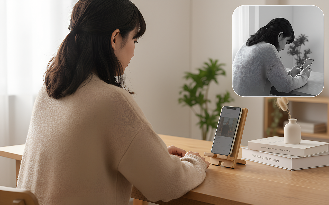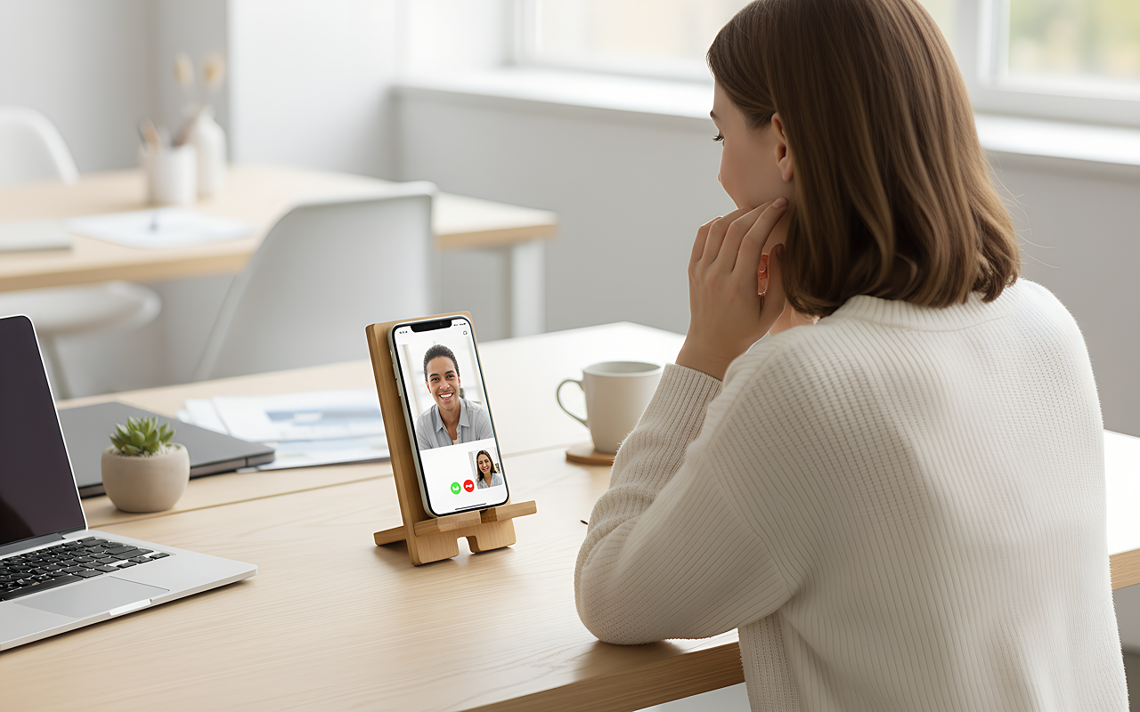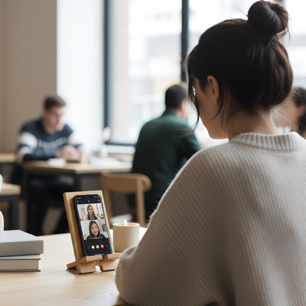 Acest suport din lemn îmi ține telefonul stabil pentru orele online. Am mâinile libere să iau notițe și nu mă mai doare gâtul!
